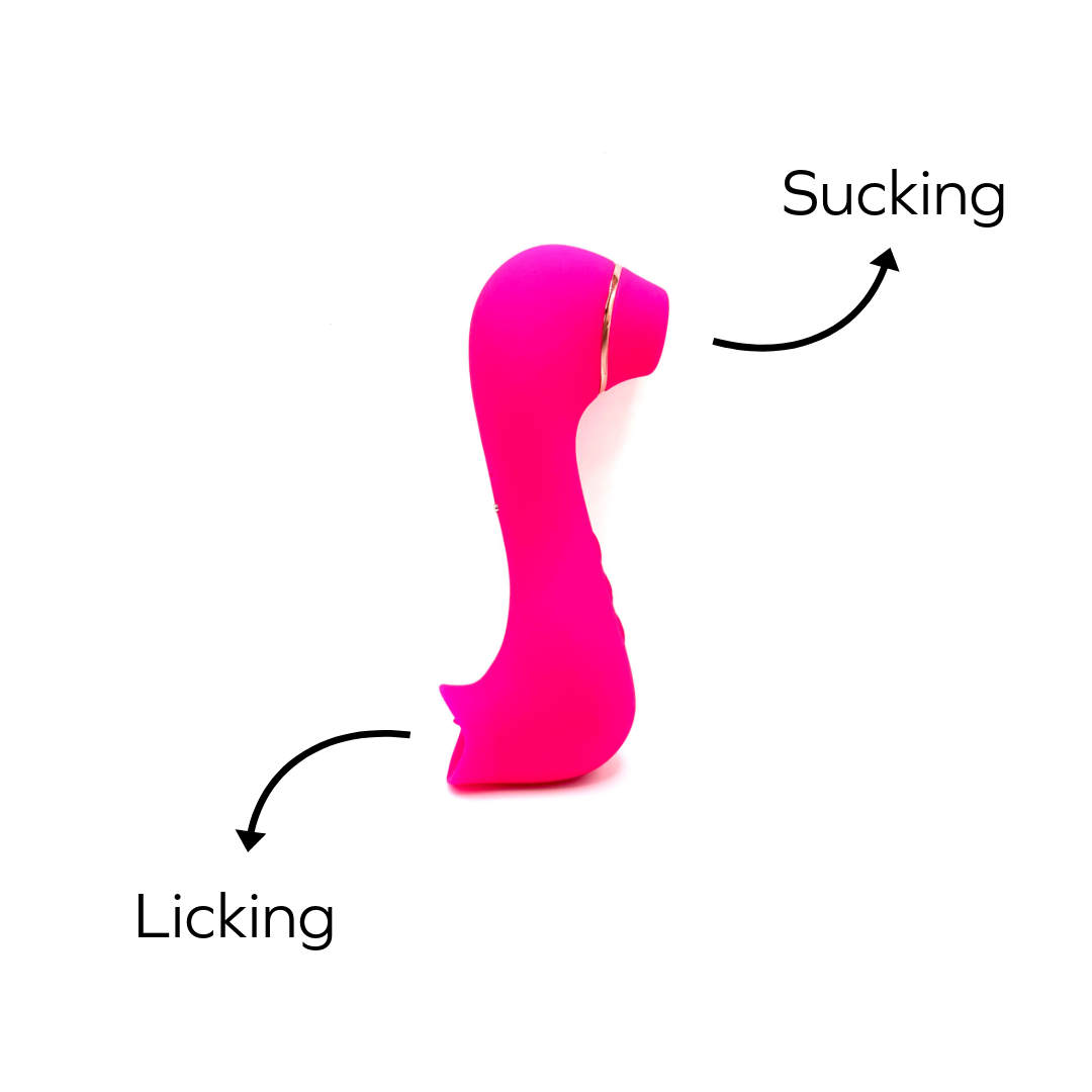 - Dual-ended pleasure with licking and suction, easily alternated