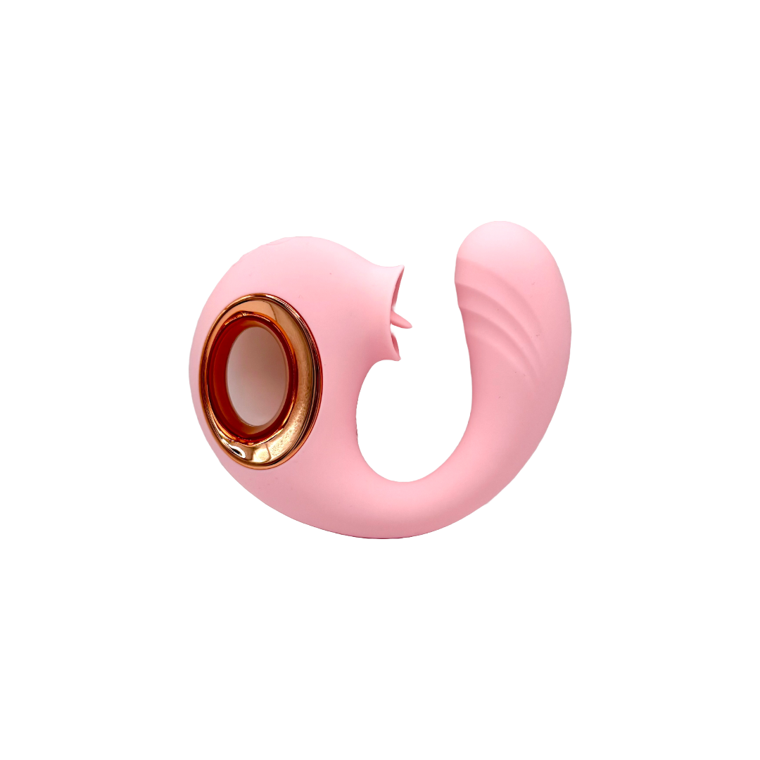 A 3-in-1 vibrator: clitoral suction, licking tips, and an internal thrusting handle